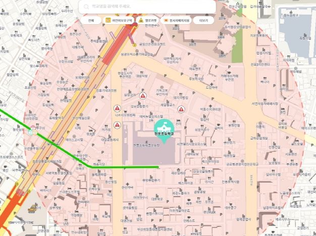 지난해 1월 부산시·경찰청·유관기관 관계자·교감 등으로 구성한 T/F팀을 꾸렸다. 이들은 용역업체와 함께 실태조사, 안전 지도 작성 검증 등을 실시하며 시스템을 개발해 왔다.
