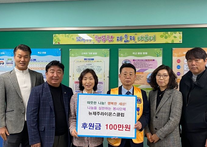 (정도일보) 제주도교육청 뉴제주라이온스클럽은 26일 일도초등학교를 방문해 농구부 꿈나무 선수들을 격려하고, 후원금 100만 원을 전달했다.