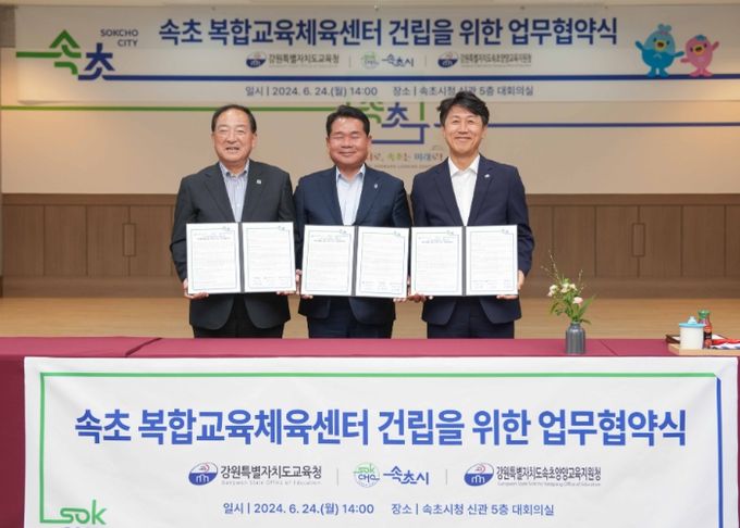 (정도일보) 강원특별자치도교육청은 24일, 속초시와 ‘(가칭)속초 복합교육센터 건립 공모사업 신청을 위한 업무협약’을 속초시청 대회의실에서 체결했다.