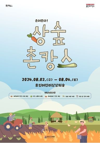 (정도일보) 용인문화재단(이사장 이상일)은 오는 8월 2일부터 8월 4일까지 용인어린이상상의숲(이하 ‘상상의숲’)에서 2024년 여름방학 특별행사 ‘상숲 촌캉스’를 개최한다.