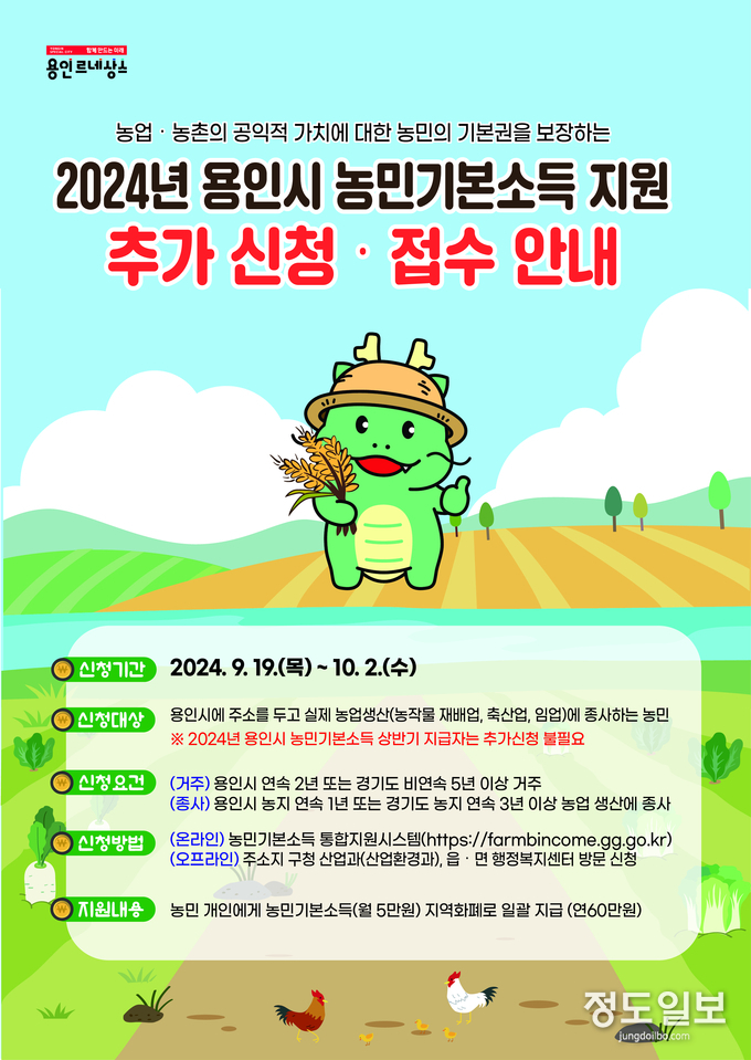 2024년 용인특례시 농민기본소득 지원 추가신청 접수안내 홍보물