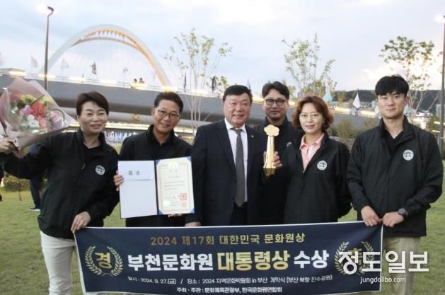 (정도일보) 부천문화원이 27일 오후 6시 부산항 북항 친수공원에서 열리 ‘2024 지역문화박람회 in 부산’ 개막식에서 창립 58년 만에 대한민국 문화원상 대상(대통령) 수상 쾌거를 달성했다.