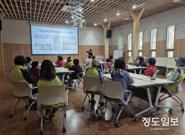 상반기에는 지난 4월 26일 14개리 중 7개리의 65세 이상 어르신 20여 명이 참여했다. 이번 하반기에는 나머지 7개리 어르신들을 초대해 올바른 약물 복용 교육과 비누 만들기, 숲속 명상 및 안마 체험을 진행해 큰 호응을 얻었다.