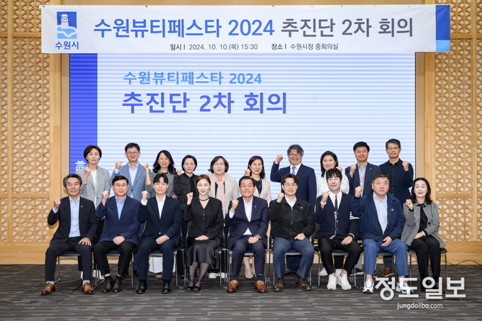 지난 10월10일 수원뷰티페스타 2024 추진단 2차 회의 참석자들이 성공적인 행사 추진을 위한 회의 후 기념촬영을 하고 있다.