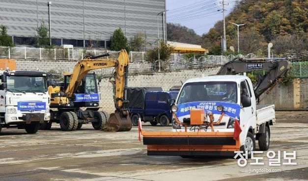 훈련에는 덤프트럭, 백호우, 트랙터, 제설차, 보행제설기 등 총 9대의 장비가 동원되었으며, 실제 상황을 가정해 훈련이 이뤄졌다. 특히, 인도 및 이면도로처럼 차량 진입이 어려운 취약 지역은 자율방재단에 배부한 소형 보행제설기 6대를 투입해 선제적 제설 작업에 나설 수 있도록 했다.