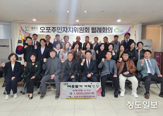 (정도일보) 광주시 오포 주민자치위원회는 6일 관내 어려운 이웃을 위해 사용해 달라며 오포1동 행정복지센터에 성금 100만 원을 전달했다.