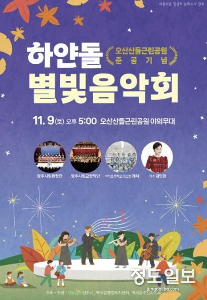 (정도일보) 양주시와 백석읍이 오는 9일 오산리 오산산들근린공원 야외무대 준공기념으로 ‘하얀돌 별빛음악회’를 개최한다고 밝혔다.