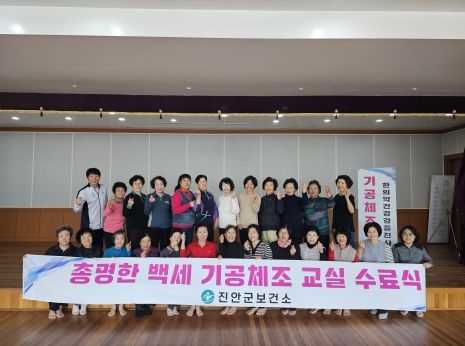 (정도일보) 진안군은 지난 19일 보건소 2층 강당에서 지역주민의 신체단련과 심신안정을 위해 운영한 ‘총명한 백세 기공체조교실’ 수료식을 가졌다.