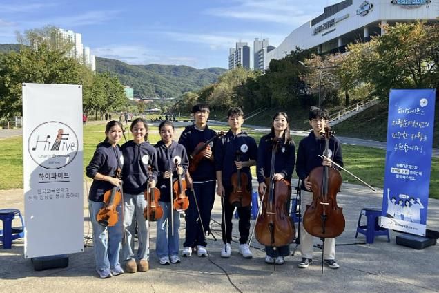 ‘하이파이브’는 한국외국인학교 재학생으로 구성된 현악 앙상블 동아리로, 올해 CJ도너스캠프 청소년 문화동아리 공모에 선정돼 환경캠페인과 관련된 무료 공연을 진행하고 있다. 또한, 아름다운재단의 ‘청년자립지원캠페인 열린 음악회’에 참여해 공연비 전액을 기부했으며, 청소년동아리 버스킹 등 활발한 활동을 이어오고 있다.