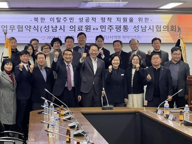성남시의료원과 민주평화통일자문회의 성남시협의회는 지난 25일 성남시의회 회의실에서 성남시의회 안극수 문화체육복지위원장, 김종환 예산결산특별위원장 등 20여 명이 참석한 가운데 북한이탈주민 의료비 지원을 위한 협약식을 개최했다.