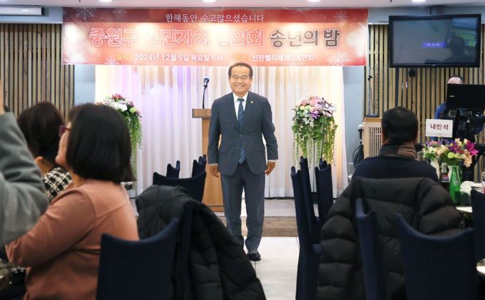(정도일보) 성남시의회 이덕수 의장이 지난 5일 중원구 주민자치협의회 송년회에 참석하여 한 해 동안 추진했던 다양한 사업 성과를 공유하고 주민들과 직접 소통하는 시간을 가졌다.