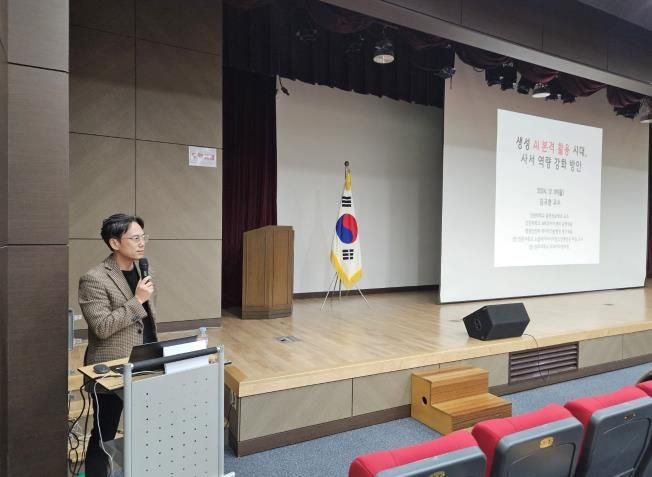 워크숍에서는 독서를 기반으로 교육도서관, 학교의 지역 독서생태계 환경을 구축하고 학생의 다양한 독서 활동을 지원하기 위해 ▲경기교육 정책의 이해 ▲도서관에서 생성 인공지능 본격 활용 ▲최신 트렌드 공유로 사서의 역량을 강화했다.