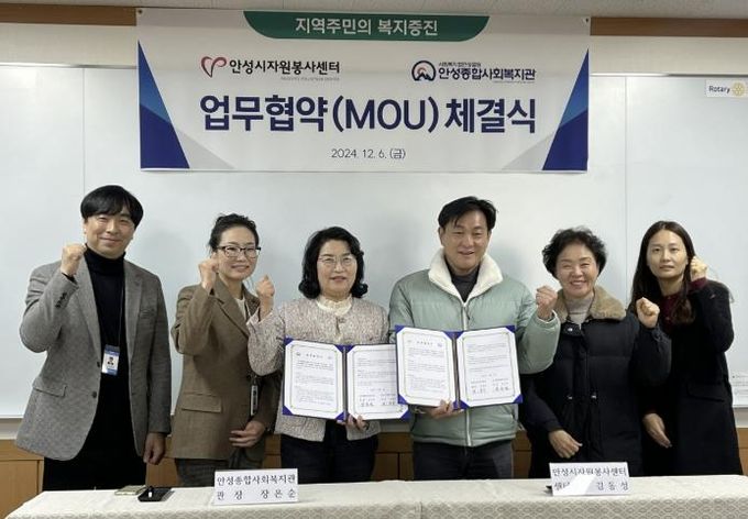 (정도일보) 안성종합사회복지관은 12월 6일 안성시자원봉사센터와 주민의 복지증진을 위한 체계적이고 통합적인 안전망 구축을 목표로 업무협약(MOU)을 체결했다.