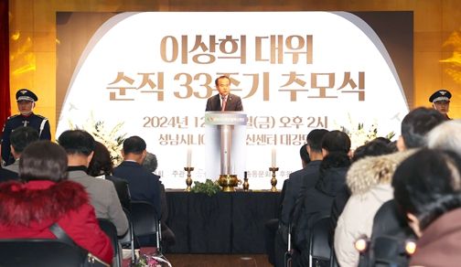 (정도일보) 성남시의회 이덕수 의장, 구재평 의원, 박종각 의원이 지난 13일 성남시니어산업혁신센터 대강당에서 열린 고 이상희 대위 순직 33주기 추모식에 참석했다.