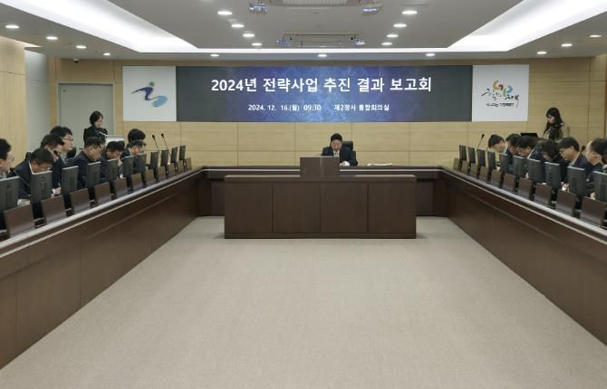 군은 16일 군청 대회의실에서 서태원 군수와 부군수, 국장‧과장 등 전 부서장이 참석한 가운데, ‘2024년 전략사업 추진 결과 보고회’를 개최했다.