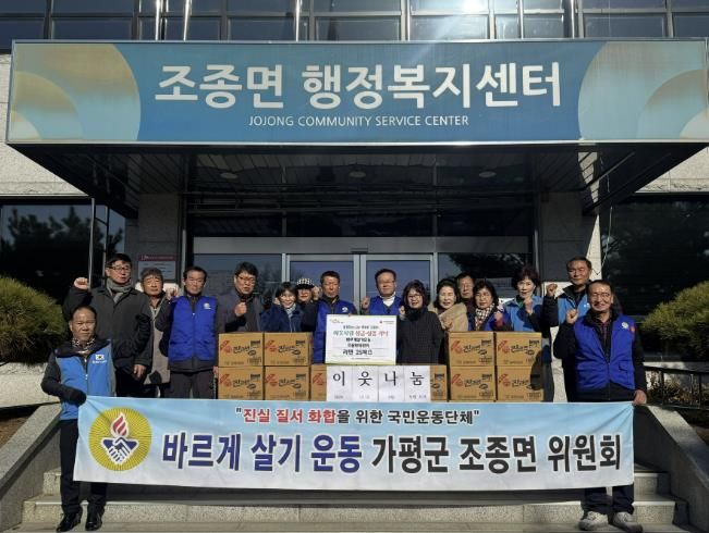 (정도일보) 바르게살기운동 가평군 조종면위원회 회원들은 최근 조종면 행정복지센터를 방문해 관내 취약계층을 위해 라면 25박스를 기탁했다.