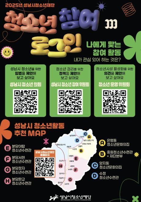 (정도일보) 성남시청소년재단이 청소년들의 다양한 참여를 확대하고 활성화하기 위해 2025년 청소년 참여기구 청소년을 2025년 2월까지 모집한다.