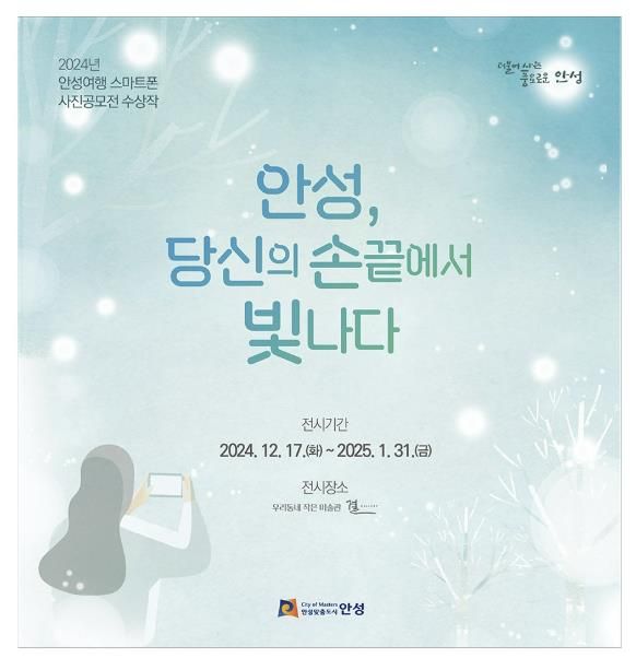 (정도일보) 안성시는 2024년 안성여행 스마트폰 사진공모전의 당선작품을 활용하여 금년 12월 17일부터 내년 1월 31일까지 우리동네 작은 미술관(결갤러리)에서 전시회를 개최한다.