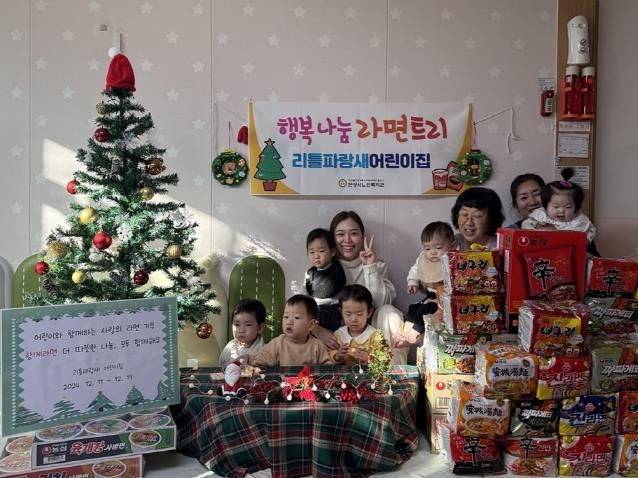 ‘행복나눔 라면트리’는 리틀파랑새어린이집 아이들과 학부모, 교직원이 모두 참여해 만들었다.