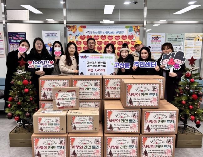 (정도일보) 의정부시 고산동주민센터는 12월 27일 고산다온어린이집과 고산아띠어린이집이 성탄절을 맞이해 저소득층을 위한 라면 1천450개를 기탁했다고 밝혔다.