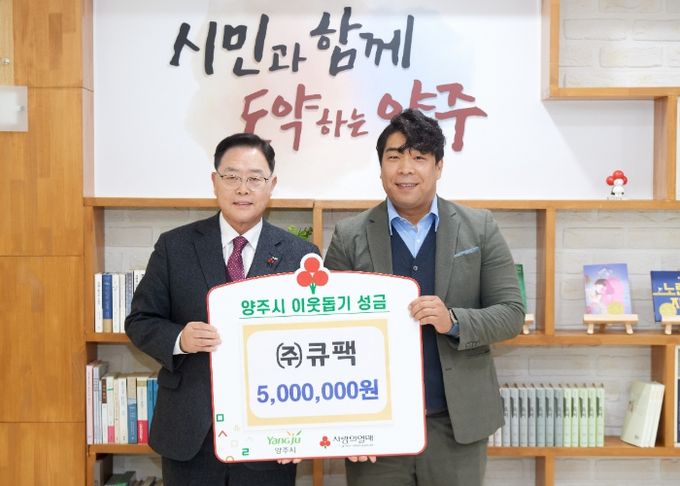 (정도일보) 양주시가 6일 광적면에 위치한 ㈜큐팩에서 시청을 방문해 양주시 어려운 이웃을 위해 써달라며 성금 500만 원을 기부했다고 밝혔다.