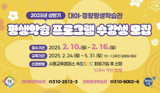 시흥시 대야·정왕평생학습관, 2025년 상반기 평생학습프로그램 수강생 모집