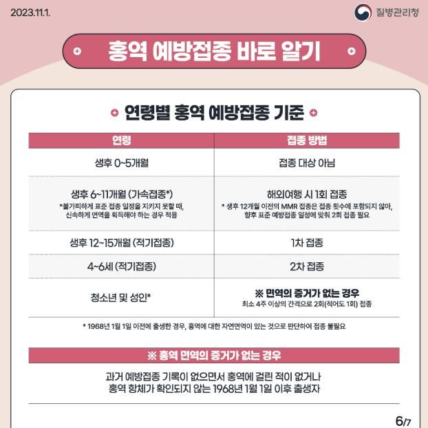 다행히 홍역은 백신 접종으로 90% 이상 예방이 가능하다. 홍역백신(MMR)을 2회 모두 접종했는지 확인하고, 접종 여부가 불확실한 경우 출국 4~6주 전 2회 접종(최소 4주 간격)을 완료해야 한다.
