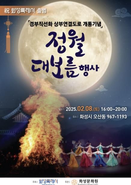 (정도일보) 화성특례시가 8일 16시부터 20시까지 동탄역 4번 출구 앞 광장에서 ‘2025년 화성특례시 정월대보름 축제’를 개최한다.