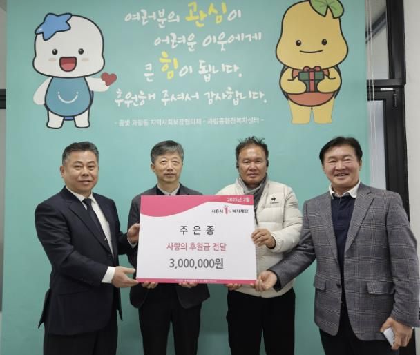 (정도일보) 시흥시 과림동 행정복지센터는 지난 13일 주민 주은종 씨로부터 지역주민을 위한 후원금 300만 원을 기탁받았다.
