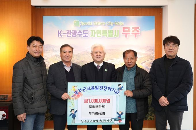 (정도일보) 무주군 농민회(회장 최연수)가 지난 4일 (재)무주군교육발전장학재단에 장학금 1백만 원을 기탁했다.