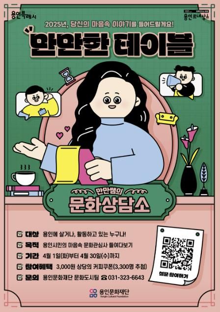(정도일보) 용인문화재단은 용인 시민의 문화 관심사 파악을 위해 시민 의견 수렴 프로젝트인 ‘2025 만만한 테이블’을 4월에 진행한다.