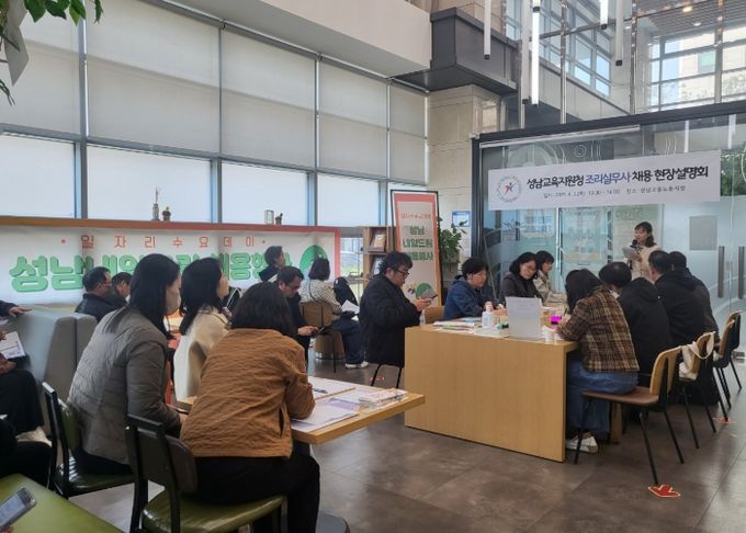 (정도일보) 성남교육지원청은 4월 3일 성남고용노동지청과 협업하여 조리실무사 채용 현장 설명회인‘일자리 수요데이, 성남 내일드림 채용 행사’를 개최했다.