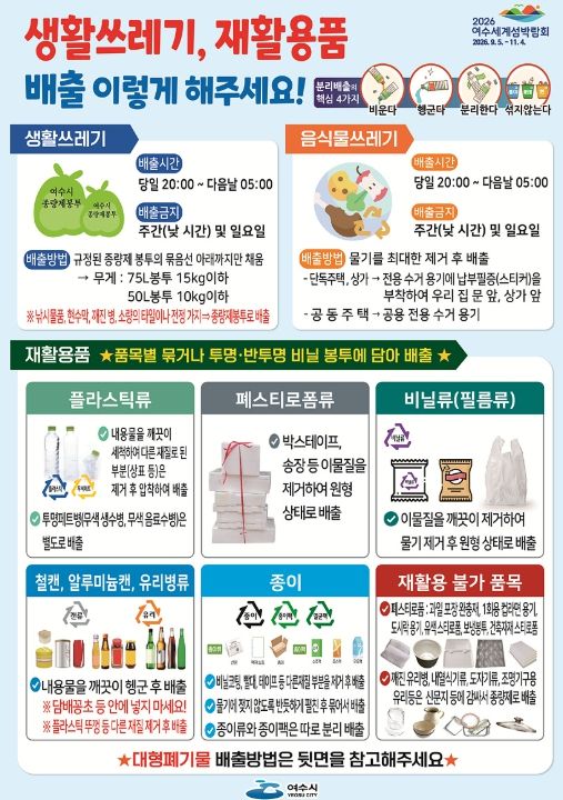 시 관계자는 “생활폐기물 중점 관리 기간 운영으로 시민 불편을 최소화하고 깨끗한 도시 환경을 유지할 수 있도록 최선을 다하겠다”며 “시민들께서도 올바른 쓰레기 배출과 음식물 쓰레기 줄이기, 재활용품 분리배출에 많은 협조를 바란다”고 말했다.