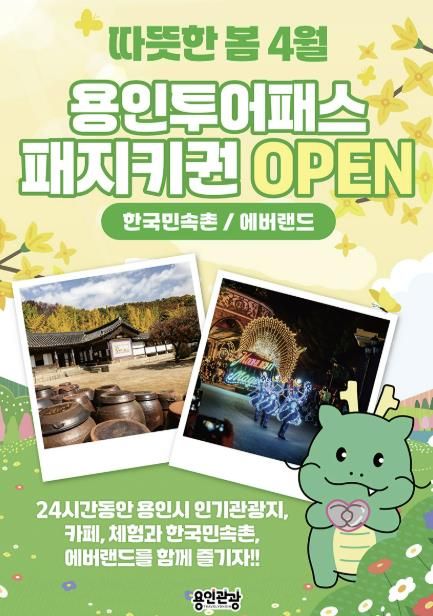 (정도일보) 용인특례시는 용인의 유료 관광지와 카페 등에서 사용할 수 있는 관광패스권인 ‘용인투어패스’로 전통문화 테마파크 ‘한국민속촌’과 대형 테마파크 ‘에버랜드’를 이용할 수 있는 새로운 여행 패키지 상품을 출시했다고 11일 밝혔다.