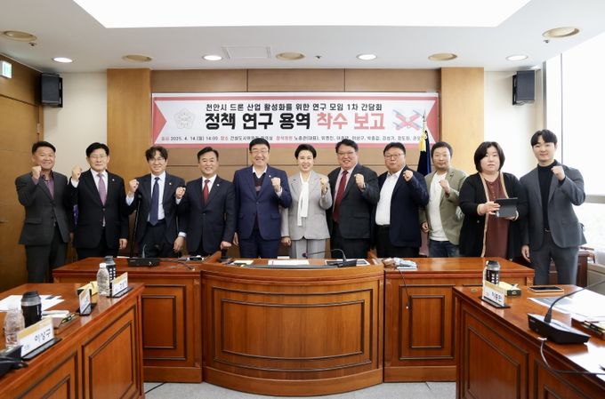 (정도일보) 천안시의회는 의원 연구모임인 '천안시 드론산업 활성화 연구모임'이 지난 4월 14일 착수보고 간담회를 열고, 드론산업 육성을 위한 정책연구에 본격 착수했다고 15일에 밝혔다.