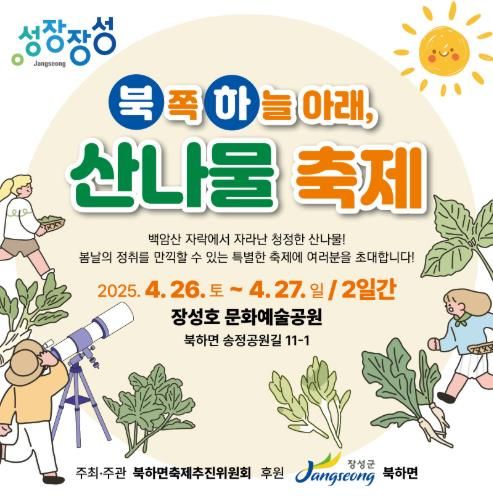 ‘제1회 북쪽하늘아래 산나물축제(이하 산나물축제)’가 오는 26~27일 이틀간 장성호관광지와 북하면 단전리 일원에서 열린다.