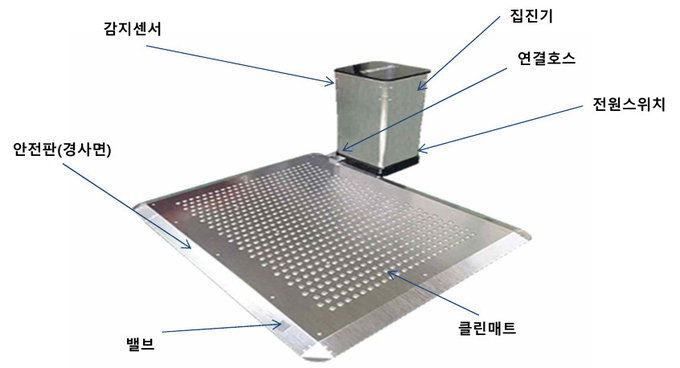 흡입매트는 이용객이 매트를 밟고 지나갈 때 바닥에 있던 먼지를 흡입하고, 내부의 여과 장치를 통해 분진을 걸러내는 방식으로 실내 공기질을 개선하는 기능을 수행한다.