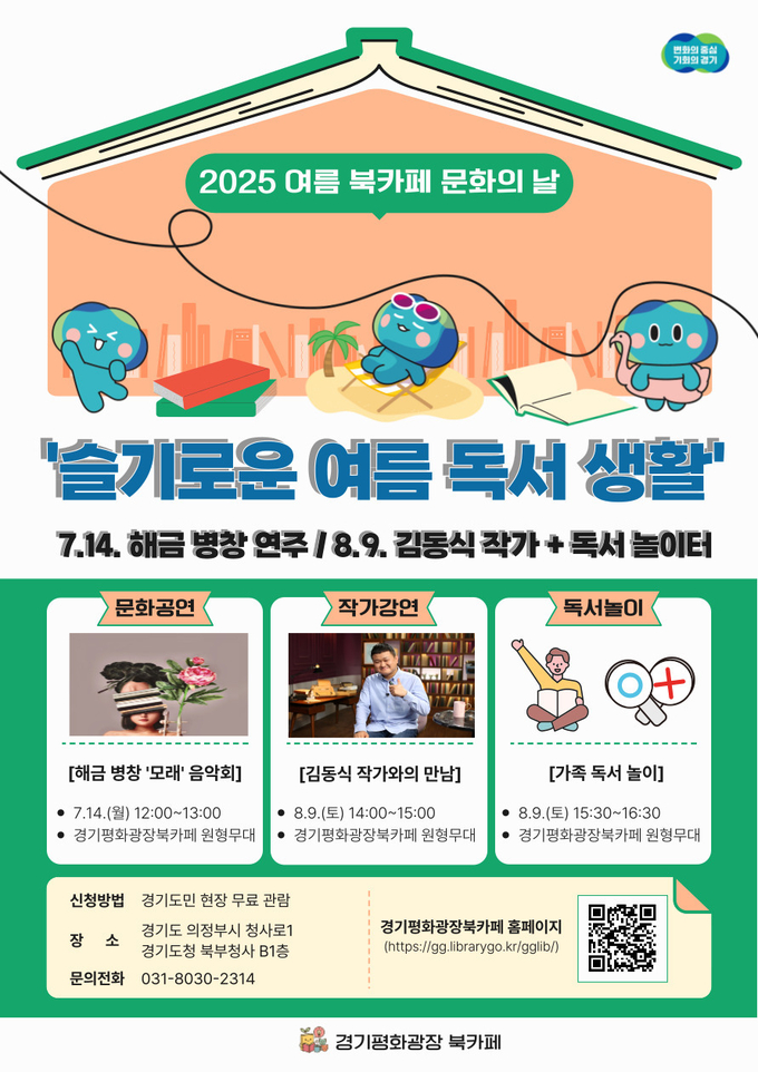[정도일보 김제영 기자] 경기도는 7월 14일과 8월 9일, 경기도청 북부청사 경기평화광장 북카페에서 ‘여름 특집 문화의 날’을 개최한다.
