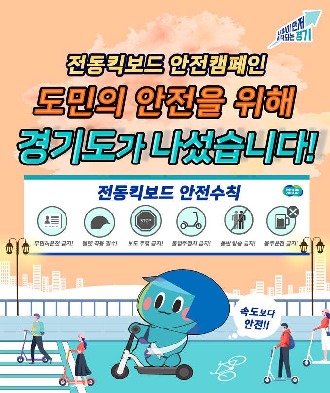 [정도일보 김제영 기자] 경기도는 11월 한 달간 경기도의회, 경기도교육청, 경기 남ㆍ북부경찰청, 경기도교통연수원, 한국도로교통공단, 시군 등 유관기관과 함께 전동킥보드 안전문화 합동캠페인을 추진한다.
