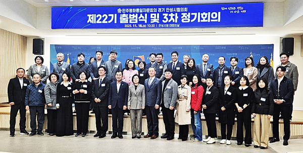 [정도일보 김선자 기자] 민주평화통일자문회(이하 민주평통)의 안성시협의회는 18일 안성시청 대회의실에서 자문위원 39명이 참석한 가운데 ‘제22기 민주평화통일자문회의 출범식 및 2025년 3분기 정기회의’를 개최했다.