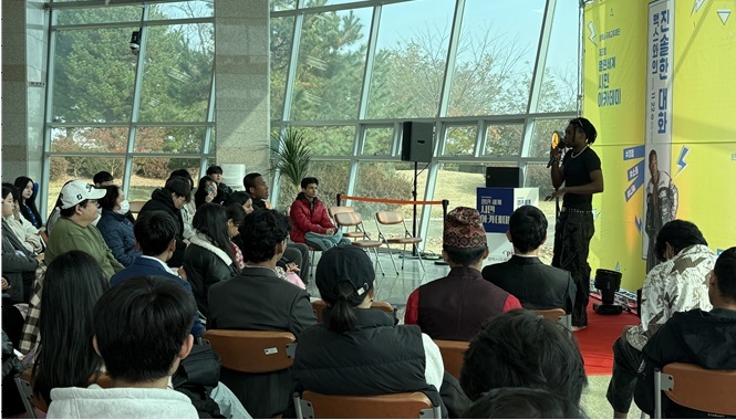 맥스는 ‘맥스와의 진솔한 대화’를 주제로, 다른 외모로 한국에서 살아온 경험, 성장 과정에서 겪은 어려움과 즐거웠던 순간, 비자 연장 등 체류 과정의 고민 등을 시민 및 유학생들과 자연스럽게 소통했다.