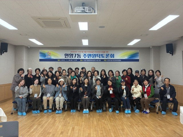 [정도일보 김현섭 기자]안양시 만안구 안양7동(동장 손순자)은 지난 11월 28일 행정복지센터 4층 강당에서 주민 30여 명이 참석한 가운데 ‘2026년 마을 의제 발굴을 위한 원탁토론회’를 개최했다고 1일 밝혔다.