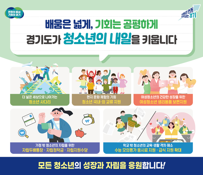 [정도일보 김제영 기자] 경기도가 청소년의 건강한 성장과 배움 기회, 생활 안정을 위해 급식, 학습·진로·자립 지원까지 아우르는 다양한 정책을 추진한다.