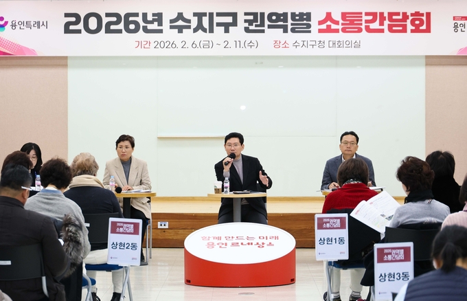 [정도일보 김제영 기자] 이상일 시장은 9일 수지구청 대회의실에서 오전·오후로 나눠 상현1·2·3동과 신봉·성복동 주민들을 대상으로 권역별 소통간담회를 열고, 주민 대표 80여 명과 지역 현안에 대해 의견을 나눴다.