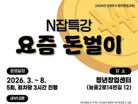 남양주시, 창업관심 청년 위한 ‘N잡 특강 : 요즘 돈벌이’ 3월부터 운영