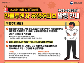 [정도일보 고정희 기자] 수원특례시(시장 이재준)는 인플루엔자 유행주의보 발령 이후 환자 증가세가 계속되고 있다며 시민들에게 각별한 주의를 당부했다. 질병관리청은 10월 17일부터 2025-2026절기 인플루엔자 유행주의보를 발령했다. 전국적으로 확산 우려가 커지고 있다. 최근 병·의원 인플루엔자 의사환자 분율은 외래환자 1천 명당 ▲7.9명 ▲13.6명 ▲22.8명 ▲50.7명으로 4주 연속 크게 증가했다. 전주 대비 2배 이상 상승하며 예년보다 유행이 빠르게 진행되고 있다. 65세 이상 어르신, 어린이, 임신부 등 고위험군은 중증으로 악화될 위험이 높다. 수원특례시는 예방접종을 아직 하지 않았다면 가까운 의료기관에서 접종을 서둘러 줄 것을 강조했다. 일상에서 흐르는 물에 비누로 30초 이상 손씻기를 실천하고, 기침할 때 옷소매로 입과 코를 가리는 등 호흡기감염병 기본 예방수칙 준수가 필요하다. 발열·기침 등 증상이 있으면 의료기관에서 신속히 진료를 받고, 사람 많은 곳 방문 시 마스크 착용을 권고했다. 겨울철에는 실내 활동 증가와 면역 저하가 겹쳐 감염 확산 위험이 더 커질 수 있다. 시는 시민들에게 자신의 건강 상태를 살피고 증상이 있을 때 충분한 휴식