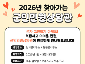 [정도일보 김현섭 기자] 양평군은 군민의 민원 접근성을 높이고 현장 중심의 행정서비스를 강화하기 위해 '찾아가는 군민민원상담관'을 시범 운영한다고 밝혔다. 이번 시범 운영은 1월부터 3월까지 3개월간 진행되며, 양서면과 용문면 2개 지역을 대상으로 실시된다. 기존 군청에서만 제공하던 민원 상담 서비스를 주민 생활권으로 확대해, 군민들이 보다 편리하게 행정 상담을 받을 수 있도록 하기 위해 마련됐다. '군민민원상담관'은 양평군 행정동우회 소속 퇴직 공무원을 위촉해 운영되며, 풍부한 행정 경험과 전문성을 바탕으로 각종 행정 민원에 대한 상담과 안내를 제공한다. 행정 절차에 대한 이해도가 높은 전문가가 직접 상담에 나서 민원인의 궁금증을 정확하고 신속하게 해소할 것으로 기대된다. 찾아가는 군민민원상담관은 매주 월요일 오후 1시부터 5시까지 면사무소를 직접 방문해 상담을 진행한다. 다만, 상담관 일정에 따라 운영 요일은 변동될 수 있다. 군은 이번 시범 운영을 통해 운영 효과와 주민 만족도를 분석한 뒤, 향후 사업 확대 여부를 검토할 계획이다. 전진선 양평군수는 "행정 경험이 풍부한 민원상담관이 직접 군민을 찾아가 상담함으로써 주민 편의가 한층 높아질 것으로 기대한