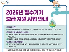 [정도일보 김선자 기자] 시흥시는 물 절약 문화를 확산하기 위해 ‘2026년 절수기기 보급 지원사업’을 본격적으로 추진한다. 올해는 작년보다 지원 대상을 넓혀 관내 저소득 취약계층까지 총 350세대에 가구당 절수기기 3종(양변기용ㆍ주방용ㆍ샤워기용)을 무상으로 지원한다. 시는 지난해 절수기기 보급 사업을 통해 관내에 총 1,050개의 절수기기를 설치하며 물 절약 효과를 높였다. 그 결과 약 7,441톤의 수돗물을 절감하고, 약 2,396톤의 탄소 저감효과를 달성했다. 2025년 실시한 만족도 조사에서는 응답자의 99.7%가 ‘만족 이상’으로 평가해 시민 참여와 호응도 역시 매우 높은 것으로 나타났다. 이번 사업은 양변기용, 샤워기용, 주방용 절수기기 3종을 지원하며, 지원 대상은 2001년 이전에 준공된 공동주택단지(입주자대표회의록 첨부 필수) 혹은 관내 기준 중위소득 63% 이하(기초생활수급자, 차상위계층, 한부모가정 등) 중 절수기기 미설치 주택 350세대다. 신청은 현재 진행 중으로 오는 8월 30일까지 할 수 있다. 신청자는 입주자대표회의록(사업내용 포함), 지원 신청서, 유의사항 동의서 등을 준비해 시흥시 수도시설과(새재로 32, 2층)로 방문(031