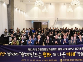 [정도일보 김제영 기자] 용인특례시는 11일 기흥ICT밸리에서 ‘제22기 민주평화통일자문회의(이하 민주평통) 용인시협의회’가 ‘제22기 협의회 출범식’을 개최했다고 12일 밝혔다. 이날 행사엔 이상일 시장과 추상구 민주평통 용인시협의회장을 비롯한 자문위원 200여 명이 참석해 출범을 축하했다. 이 시장은 새로 위촉된 자문위원 대표 6명에게 위촉장을 전수하고, 평화통일 기반 조성에 이바지한 공로로 자문위원 2명에게 표창장을 수여했다. 이 시장은 “‘평화통일이 과연 가능할까’ 회의가 드는 상황에서도 지역의 훌륭한 지도자들이 우리가 결코 놓칠 수 없는 중대 과제인 ‘평화통일’을 위해 힘을 모아주고 계시는 민주평통 관계자들께 응원의 뜻을 전한다”고 말했다. 추상구 회장은 “지역사회와 함께 평화와 번영의 한반도를 만들어 가겠다”며 “자문위원들과 협력해 시민 공감형 통일 활동을 확대하겠다”고 했다. 제22기 민주평통은 2025년 11월 1일부터 2027년 10월 31일까지 2년간 평화 공존과 번영의 한반도 구현을 위한 평화통일 의견 수렴‧정책건의, 평화통일기반 조성 등 역할을 수행한다. 이번 제22기 용인시협의회는 총 205명의 자문위원으로 구성됐다. 용인시협의회는 향