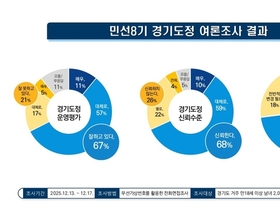 [정도일보 김제영 기자] 민선8기 경기도정에 대한 여론조사 결과 도정 운영에 대한 도민 평가가 지난 9월 조사보다 상승한 것으로 나타났다. 경기도가 여론조사 전문기관 넥스트리서치에 의뢰해 12월 실시한 여론조사 결과, 경기도정 운영을 ‘잘하고 있다’는 응답은 67%로 집계됐다. 이는 동일한 조사 설계로 실시한 9월 61%보다 6%p 상승한 수치다. 반면, 도정 운영을 ‘잘 못하고 있다’는 응답은 21%로 9월 22% 대비 1%p 하락했다. 경기도정 전반에 대한 신뢰도를 묻는 질문에서는 응답자의 68%가 경기도정을 ‘신뢰한다’고 답한 것으로 나타났다. 정책 분야별 평가 결과, 교통 분야 긍정 평가가 76%로 가장 높게 나타났으며, 민생경제와 복지 분야는 각각 66%, 미래먹거리 분야는 61%로 집계됐다. 지역균형발전 58%, 기후위기 대응과 청년 분야는 각각 54%, 사회적 가치 분야는 53%였으며, 주거 분야도 52%로 긍정 평가가 과반을 기록했다. 경기도정의 주요 성과 분야를 묻는 질문에는 교통 분야를 꼽은 응답이 24%로 가장 많았으며, 복지 분야(13%), 민생경제 분야(11%), 미래먹거리 분야와 지역균형발전 분야가 각각 8%로 뒤를 이었다. 이밖에